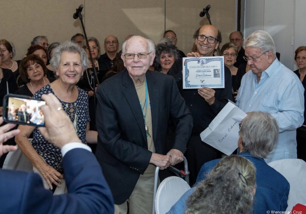 El encuentro sirvió para homenajear los 70 años de vida de esta importante institución sin fines de lucro que ha sido un pilar cultural y religioso para la comunidad cubana en el sur de Florida. La entrega del reconocimiento al valioso aporte de esta agrupación musical estuvo a cargo del Dr. Francisco Javier Müller. La cita estuvo además hermosamente amenizada con las magníficas voces y anécdotas de la Coral Cubana, quienes nos deleitaron con algunas piezas de su repertorio como las míticas canciones cubanas El Mambí, Virgen Mambisa y Clave a Marti, guiados por la batuta del maestro Javier Trujillo.