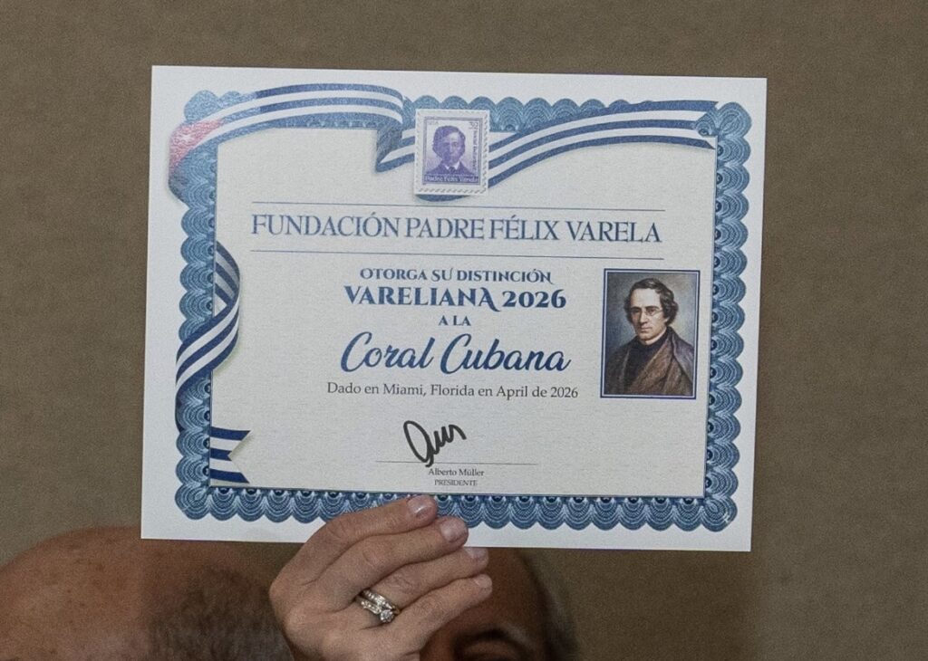 La Bendición, impartida por el Padre José Espino, rector de la Ermita de la Caridad, fue el mejor amparo espiritual para el merecido homenaje que se le rindió a la Coral Cubana de Miami, agrupación de voces, fundada por Carmita Riera, originalmente en Cuba en 1956 y trasladada al exilio poco después.
