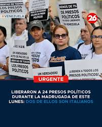 El régimen de Venezuela anuncia un mayor numero de presos liberados, la cifra asciende a 116 presos políticos.